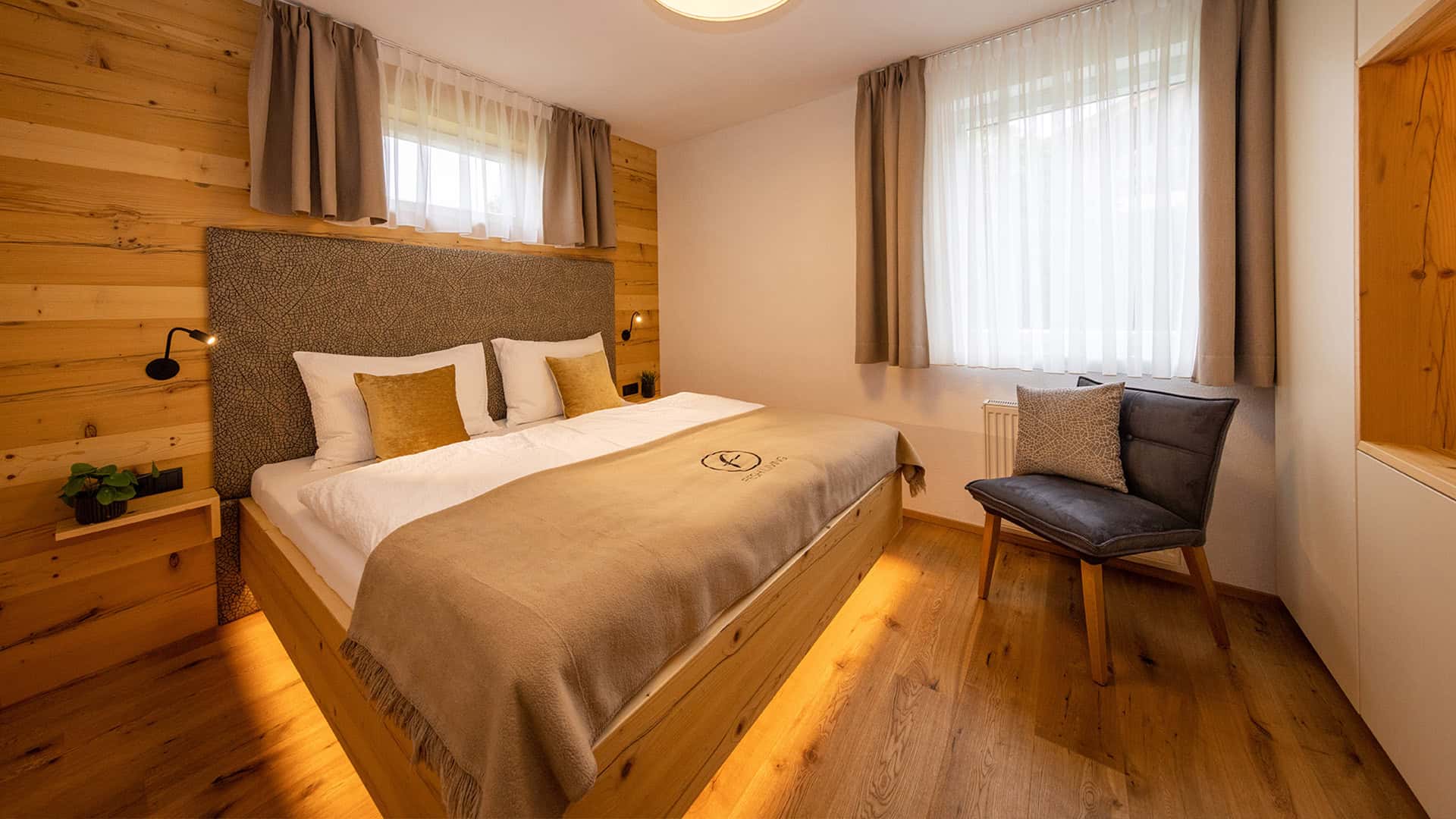 Für alle, die Rückzug und Entspannung suchen, ist das Apartment FESH LIVING 2 die richtige Wahl. Die Sauna ist von hier nicht weit und garantiert dir herrlich relaxte Stunden. Auf der überdachten Terrasse stehen alle Zeichen auf Natur-Wellness, denn die Sonne scheint dir hier schon früh morgens ins Gesicht. Und drinnen? Da präsentiert sich die Ferienwohnung mit zwei getrennten Schlafzimmern, einem Schlafsofa und einem gemütlichen Wohn-/Essbereich samt voll ausgestatteter Küche im charmanten luxury Look.